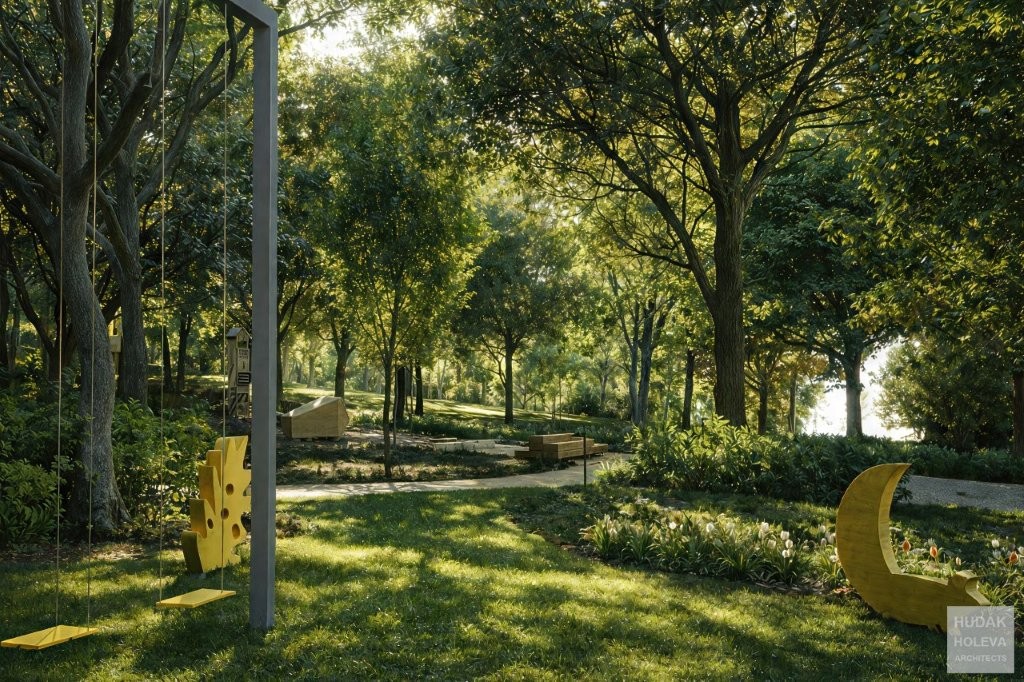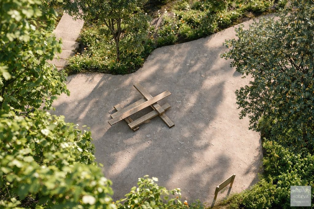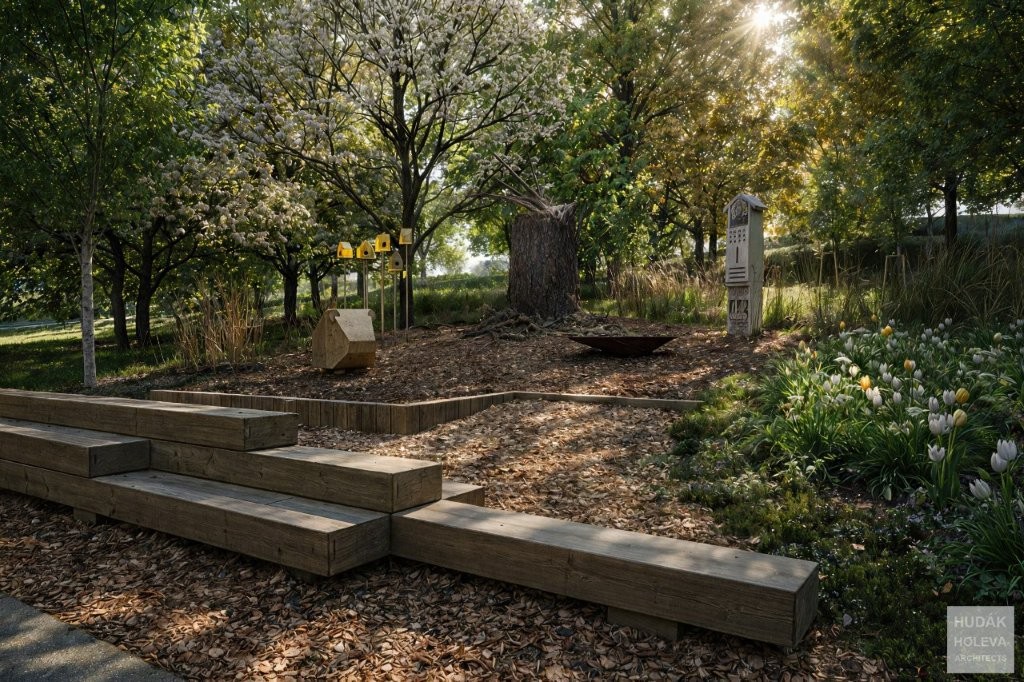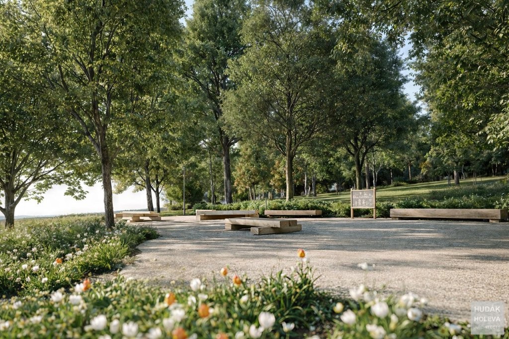čistín s prvkami drobnej architektúry, ktoré budú vizuálne zjednotené s prvkami prvej