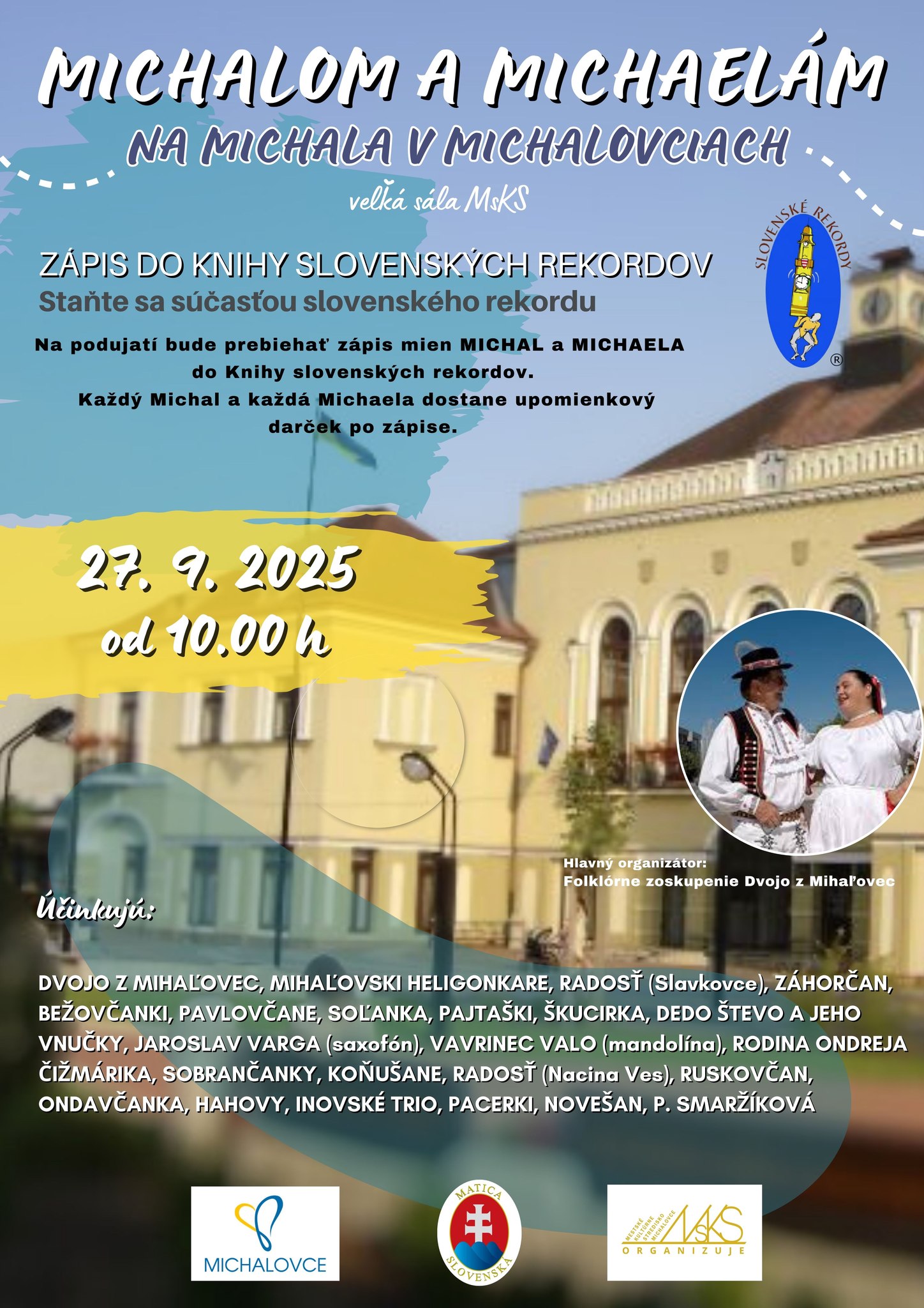 Staňte sa súčasťou slovenského rekordu! Na podujatí bude prebiehať zápis mien MICHAL a MICHAELA do Knihy slovenských rekordov. Každý Michal a každá Michaela dostane po zápise upomienkový darček.